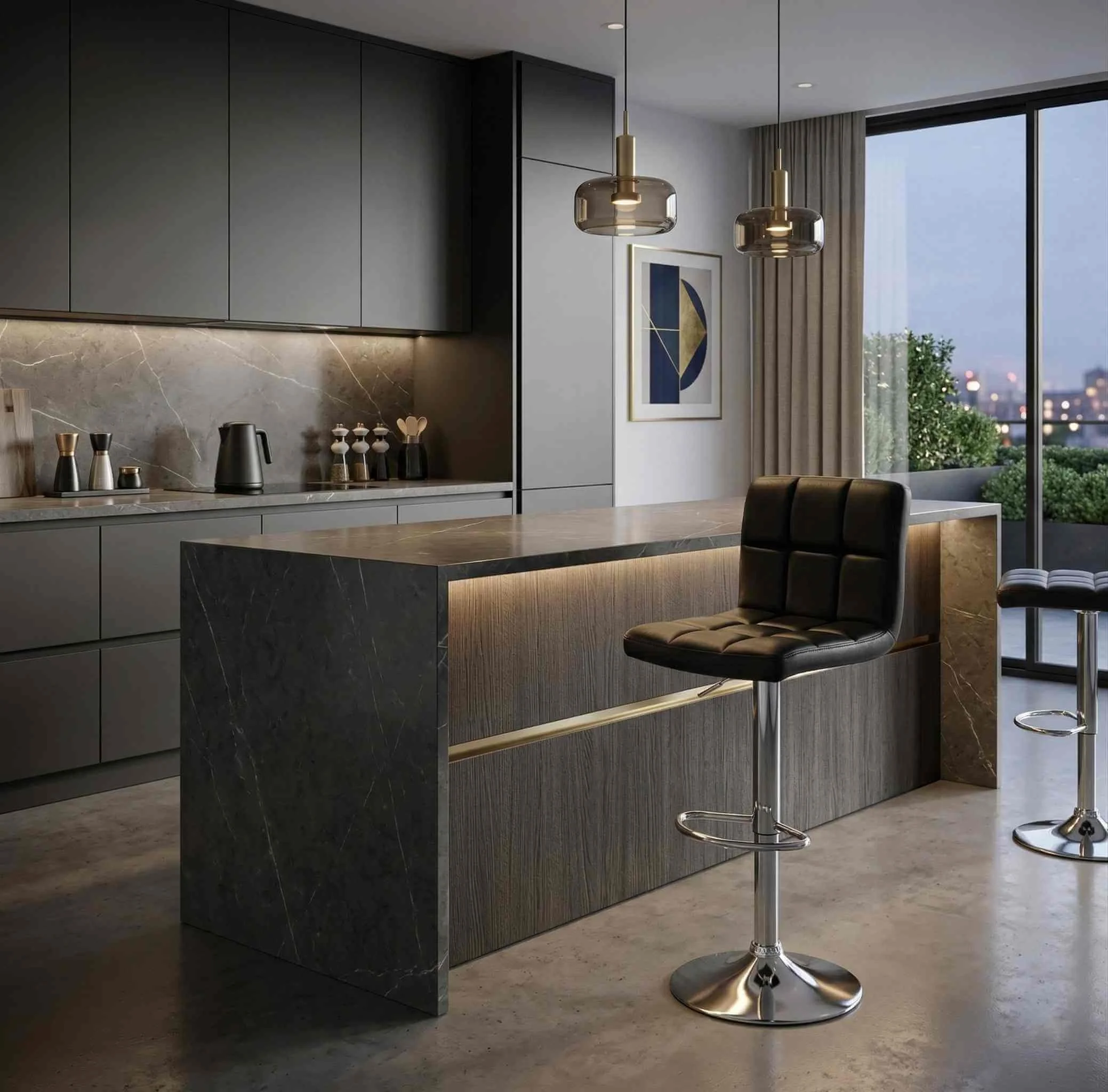 Dzięki płynnej regulacji wysokości i funkcji obrotu 360°, mebel ten gwarantuje najwyższy komfort użytkowania przy każdej wyspie kuchennej.