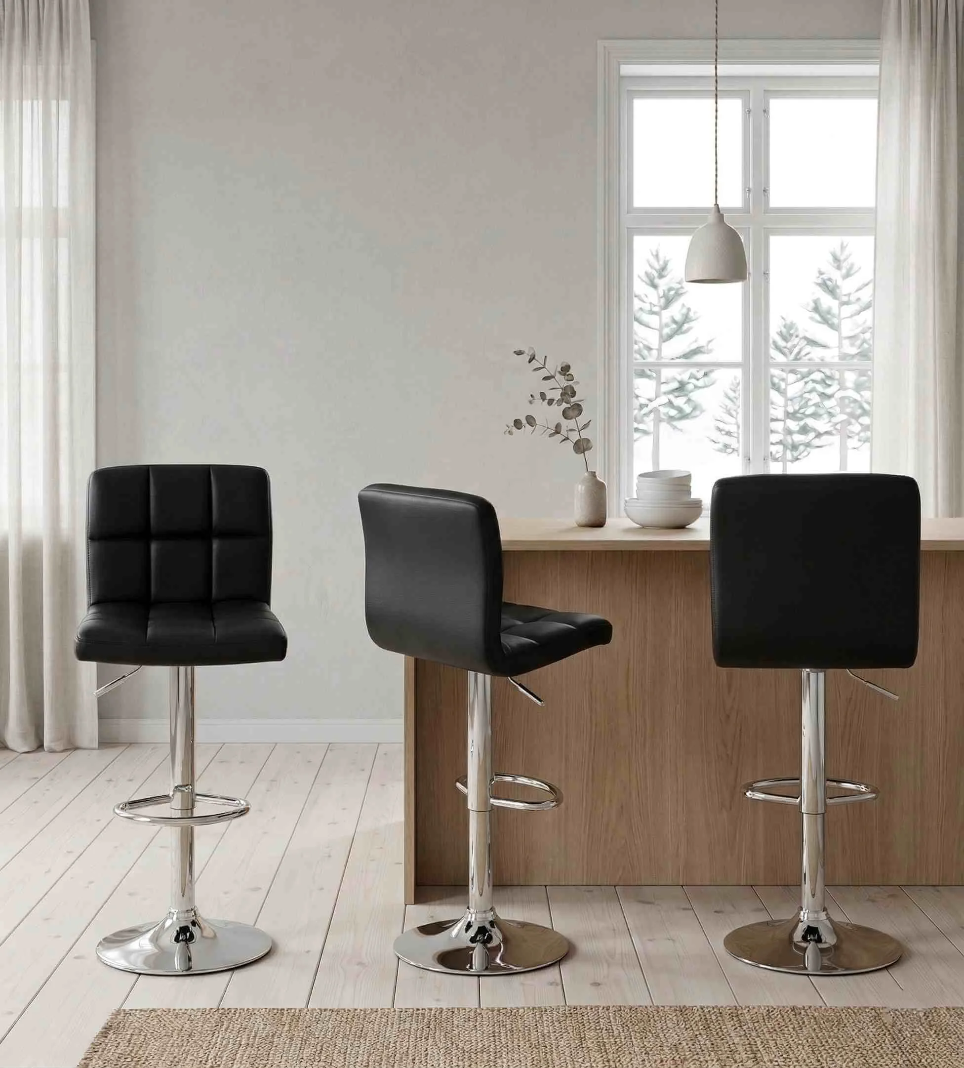 Solidna chromowana noga z podstawą zapewnia pełną stabilność, a gumowa uszczelka skutecznie chroni podłogę przed porysowaniem.