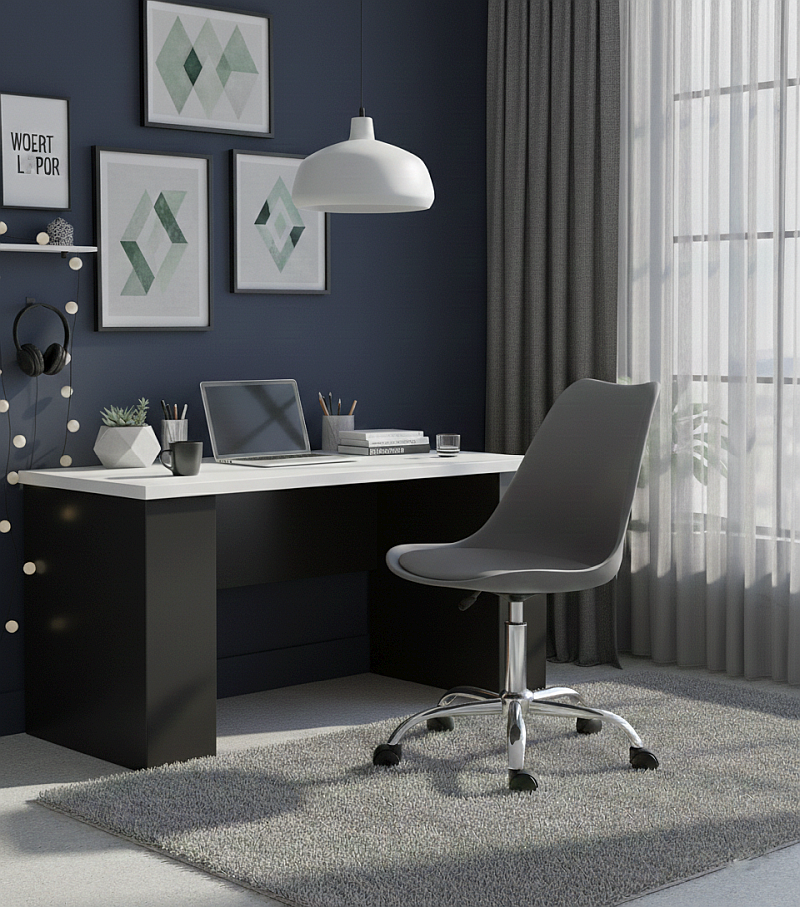 Uniwersalny design: Szary kolor w połączeniu z chromem to ponadczasowy zestaw, który pasuje do pokoju nastolatka, domowego gabinetu czy nowoczesnej recepcji.