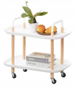 Elegancki barek na kółkach. Solidna konstrukcja oraz wykonanie. Możliwość przewożenia mniejszych rzeczy na dwóch tacach. Do wykorzystania w: