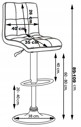 - Odległość od podnóżka do siedziska: 20 - 40 cm