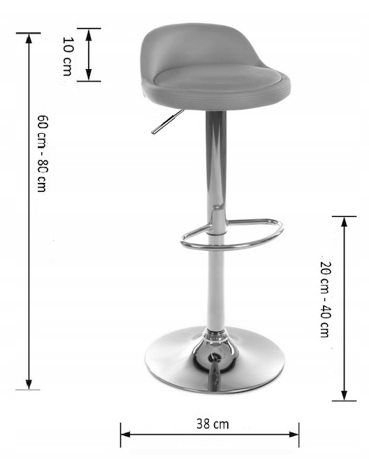 - Siedzisko (szerokość x głębokość): 38 x 33 cm